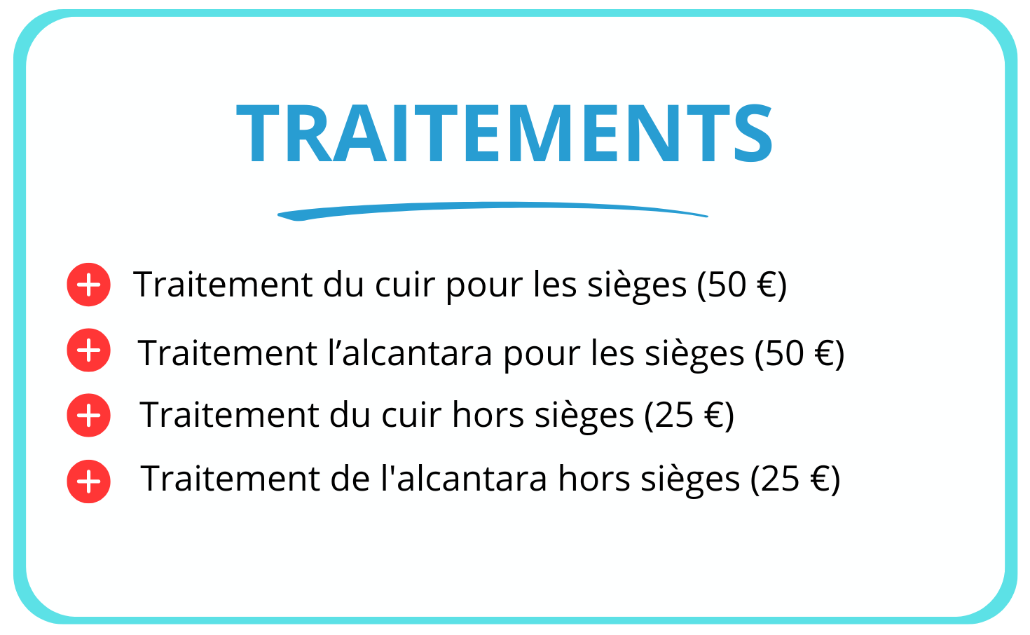 En plus de nos prestations principales, nous proposons une gamme de suppléments pour redonner à votre véhicule tout son éclat. Shampoings adaptés, traitements spécifiques pour l’intérieur , finitions protectrices et soins détaillés : chaque option est pensée pour répondre aux besoins précis de votre voiture.